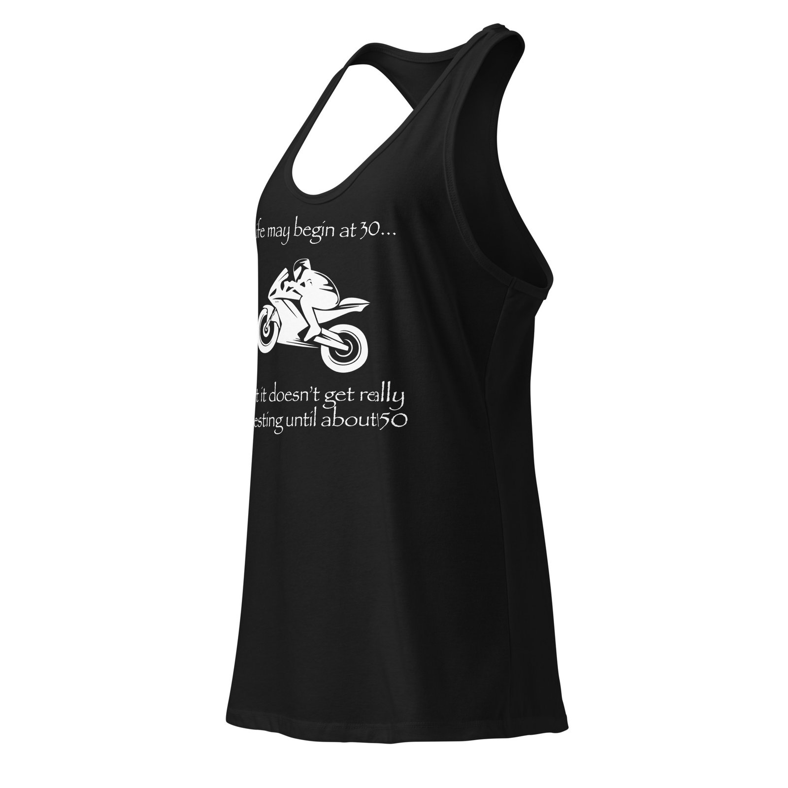 Life may begin at 30… but it doesn’t get really interesting until about 150, Women’s fitted racerback tank top